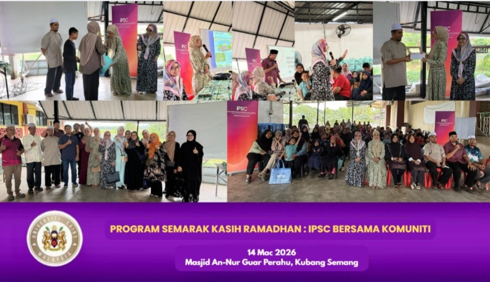 Kubang Semang, 14 Mac 2026 – Pusat Perancangan Institusi dan Strategik (IPSC) telah menganjurkan Program Semarak Kasih Ramadhan IPSC Bersama Komuniti bertempat di Masjid An-Nur, Guar Perahu, Kubang Semang, sebagai inisiatif memperkukuh hubungan antara institusi dan masyarakat setempat serta menyemarakkan keberkatan bulan Ramadhan.